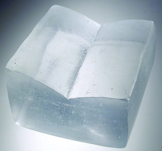 Cast clear glass in the form of an open book.